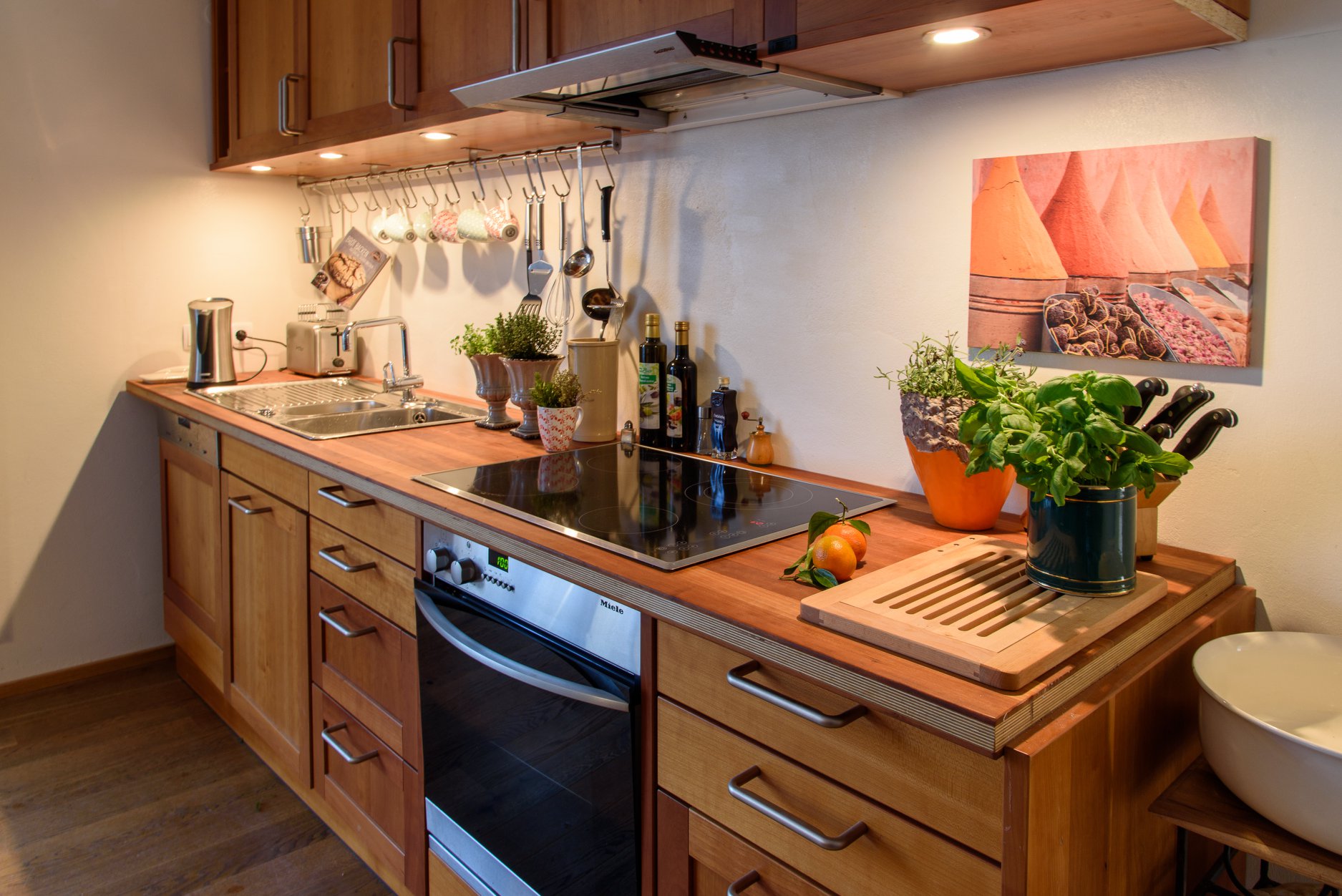 The spacious apartment is accessed via the outdoor terrace. The rooms are very individually and lovingly decorated. The combination of new and antique creates a special charm. Cooking is fun in the well-equipped cherry wood kitchen, where beautiful things and quality come together.
