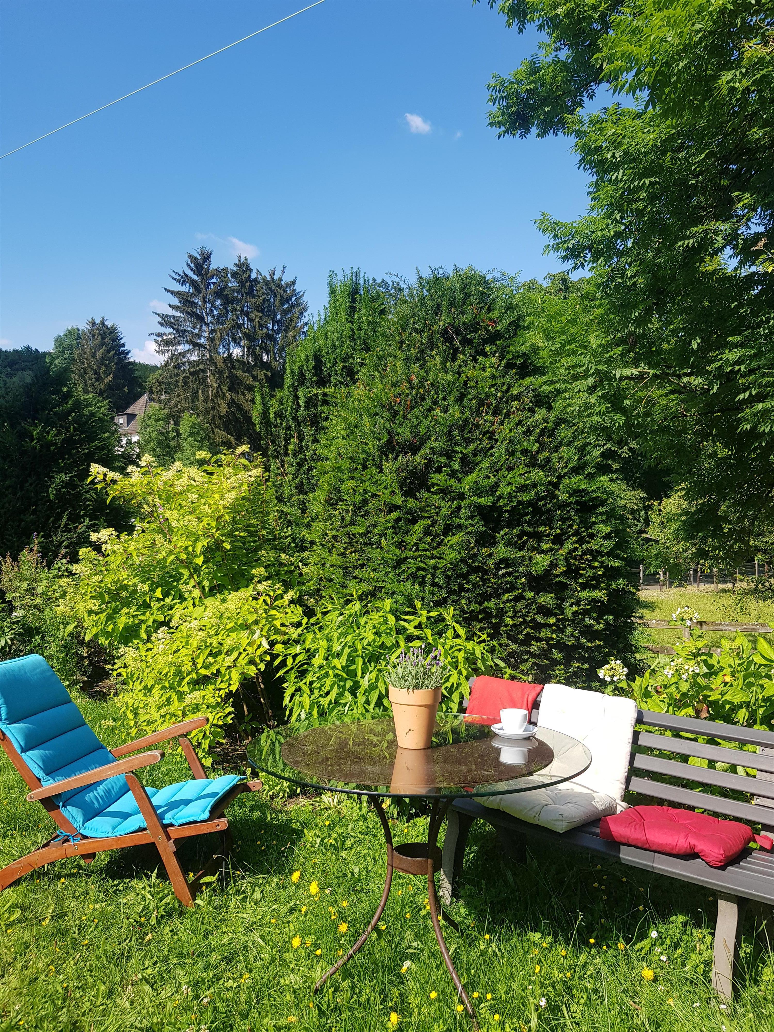 Wanderwege führen durch den Wald in die Kreisstadt mit Geschäften in der Fußgängerzone und einem Einkaufzentrum, mit Kaffees, Eisdielen, Restaurants und Brauerei. Ins Zentrum und zum Bahnhof fahren aber auch Busse, die in der Nähe des Hauses an- und abfahren (Fahrzeit mit dem Bus: ca. 10 Minuten). Zu einigen Rundwanderwegen oder Talsperren gelangen Sie ebenfalls mit dem Bus. - Schlüsselsafe bei Spätanreise.