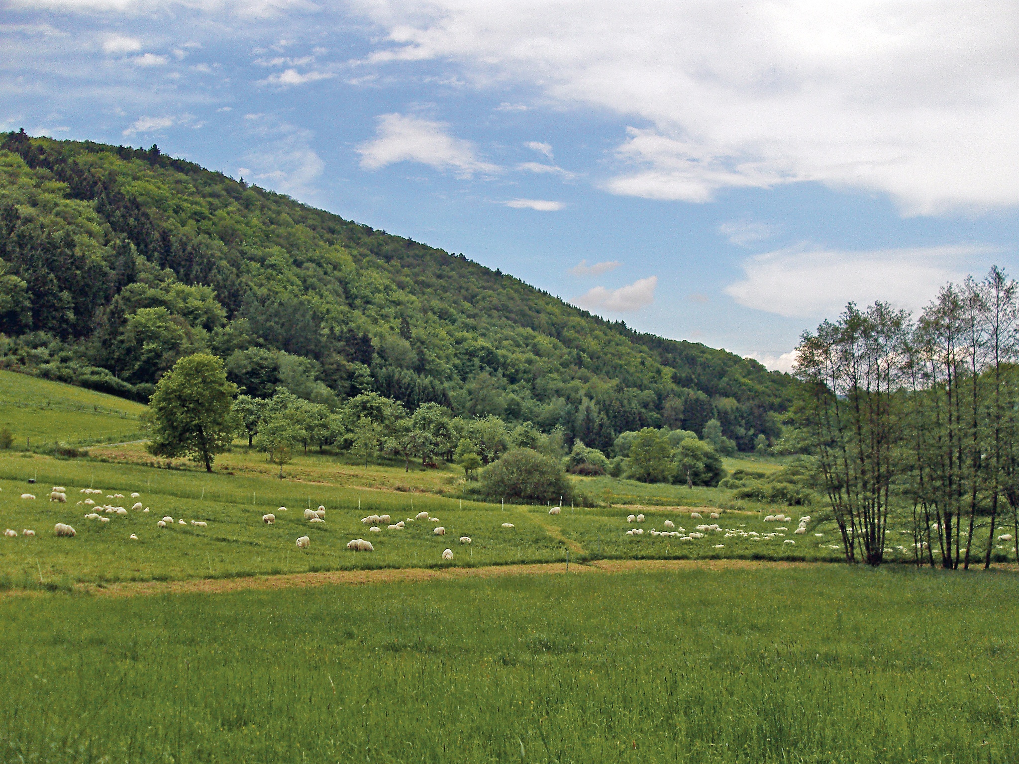 Your starting point is directly at the hiking car park with a bathing area at the Dreisel Siegbogen. The ascent of the "Umlaufberg" Dreisel gets you going a bit right at the start of your circular route. Ages ago, the Sieg flowed around the present Umlaufberg until wind and water eroded so much soil and rock that a breakthrough formed. The Sieg diverted its course into the new bed – the old riverbed dried up. Once at the top, a short detour to a resting place is worthwhile, from which you can overlook the former river loop and the surrounding heights. After a gentle descent, the bleating of sheep and the lonely calls of circling buzzards accompany you in the former river valley. In the meadows of the old river arm, rare butterfly species such as the Small Blue (Wiesenknopf-Ameisenbläuling) find a valuable habitat. About halfway along the path, you reach the village of Helpenstell and from there turn directly to the opposite slope to walk back toward Dreisel. You stroll right along the edge of the forest and enjoy the view of the meadows, which are interspersed with old, overgrown orchards. After a short stretch through Dreisel and a subsequent ascent, the Sieg reappears and you follow its course back to the starting point.