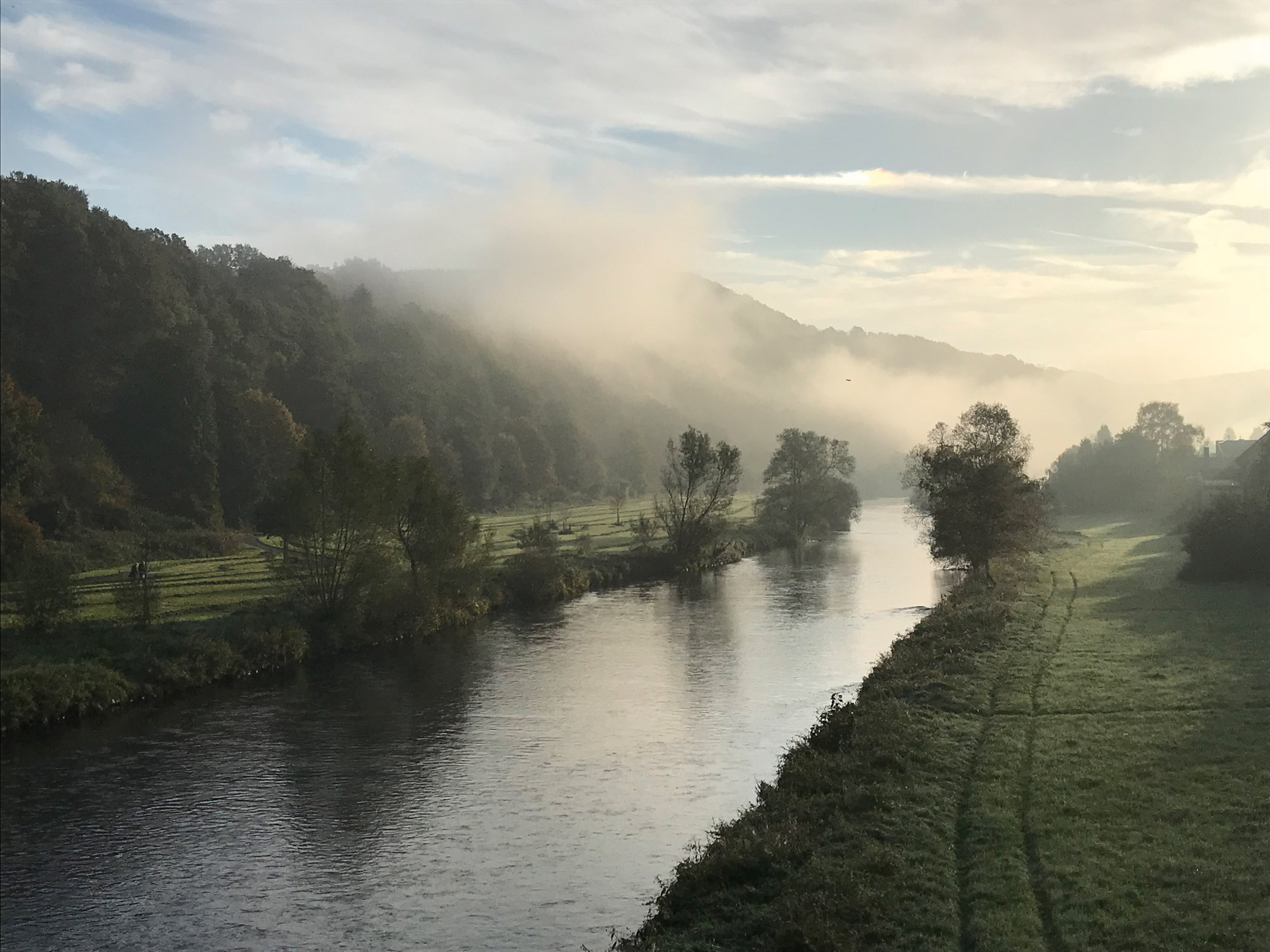 The short but very varied route starts at the forecourt of Herchen Bahnhof stop. Here the trains of RE 9 (Köln-Siegen) and the S-Bahn lines S12 and S19 stop. Free parking is also available. The spa town of Herchen is already signposted directly at the station. After just 300 m, the route turns right and runs next to the railway line with a bicycle bridge over the Sieg. Up to Röcklingen, the route is pleasantly flat and signposted as Radweg Sieg. A stop in Herchen is worthwhile. The spa park and the ensemble of buildings testify to a long tradition of local recreation in the Sieg valley. From Röcklingen it gets sporty. At the junction, we follow the signs for Leuscheid. A total of 250 meters of elevation must be climbed to the highest point. Shortly before Ohmbach, a short break is worthwhile at the healing spring, which is only a few meters from the path at the brook. At the sports field in Leuscheid, we leave the signposted route and ride through the town centre. GPS navigation is recommended here. At the evangelical church, we keep right and follow the main road to Kuchhausener Kirchweg. Here it goes back into the forest. The next highlight, the basalt crater Blauer Stein, is just a short distance away. From the car park, the route is signposted again. Behind the model airfield, directly on the state road, we reach junction 62 and follow the signs Stromberg/Herchen Bahnhof/junction 61. From here it goes downhill for almost 5 kilometres. The once dense forest now offers many views of the Sieg valley. Down at the Sieg, numerous benches in the oak grove invite you to take a break. It is now not far back to the starting point Herchen Bahnhof. The last 3 kilometres can be enjoyed relaxed on the Radweg Sieg.