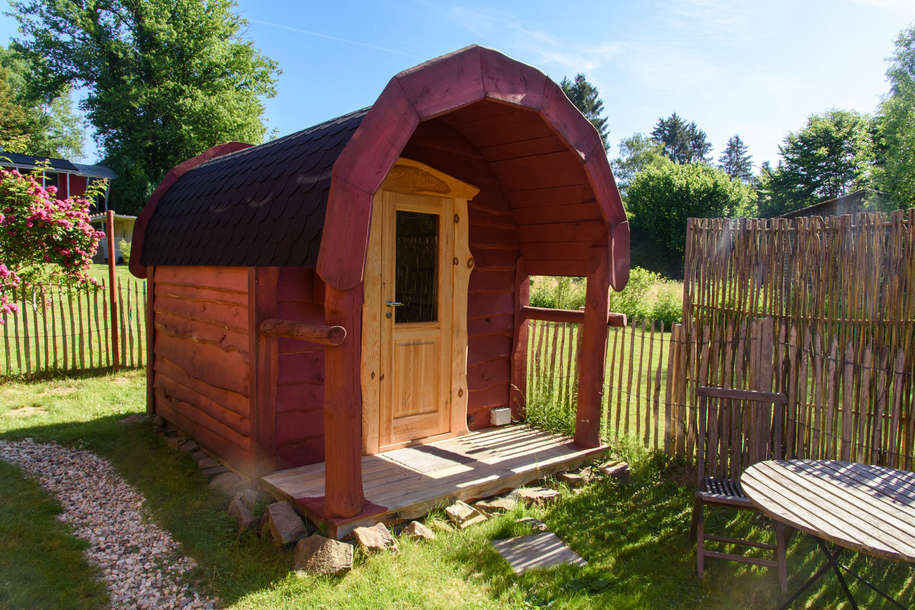 Garten mit Hobbitsauna