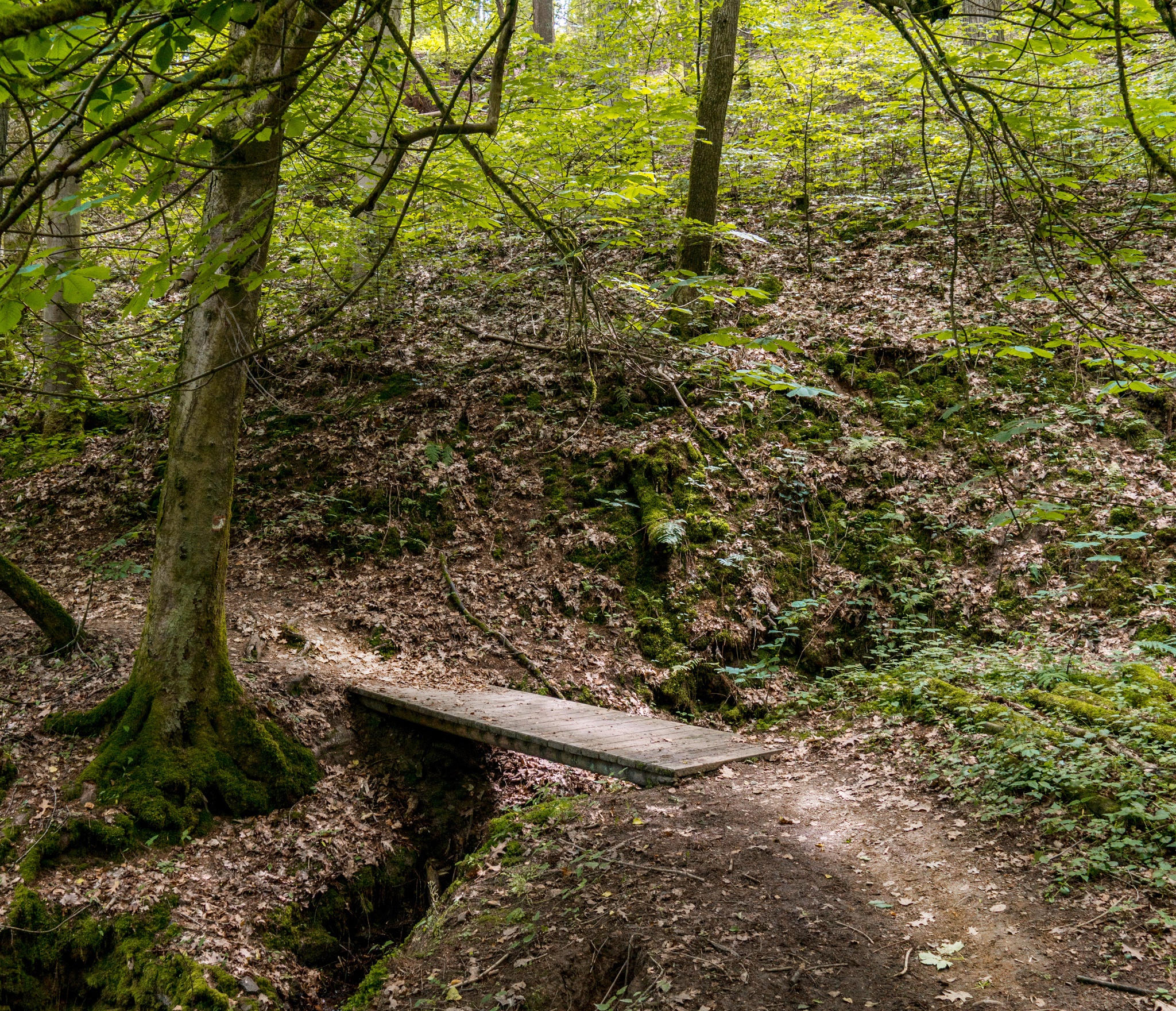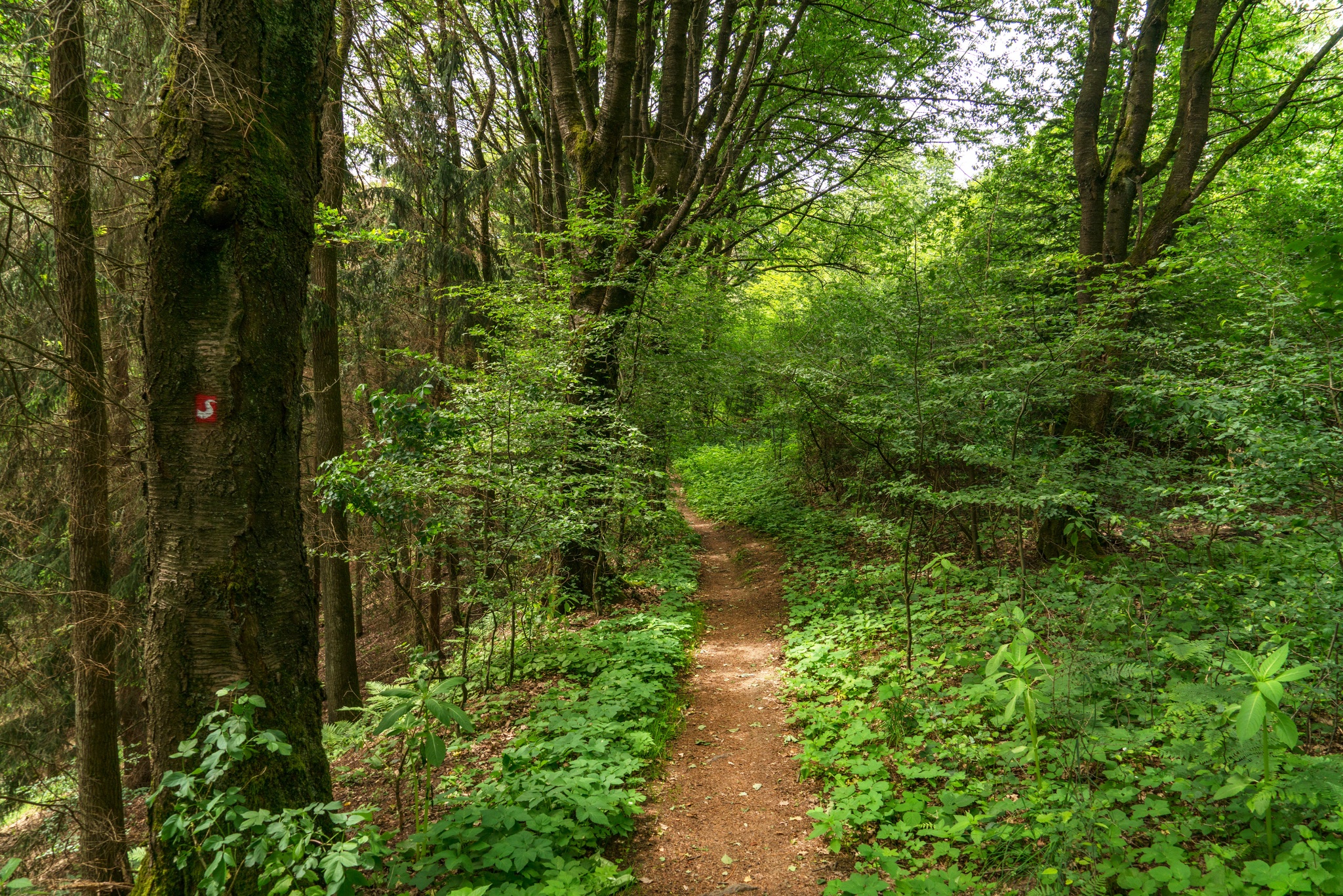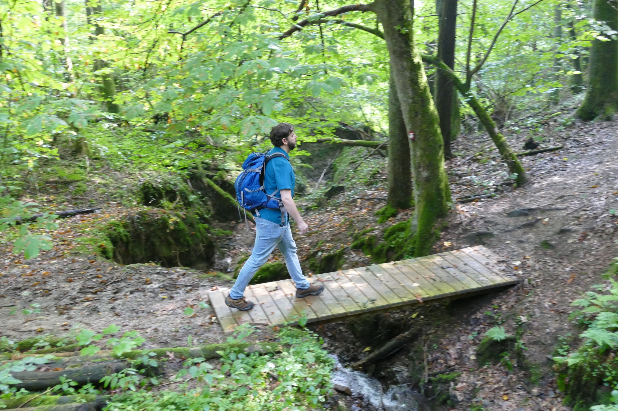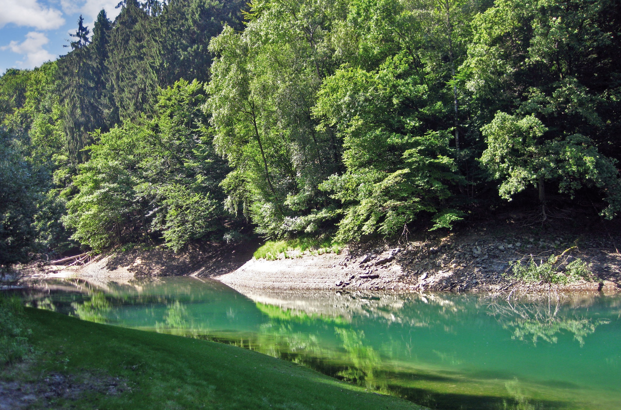 Die über 20 Kilometer lange Route ist wegen ihrer teils sehr schmalen Trampelpfade und dem stetigen Auf und Ab auch für geübte Wanderer eine Herausforderung! Am Staudamm habt ihr eventuell nochmal Gelegenheit, eure Trinkflaschen mit frisch aufbereitetem Talsperrenwasser zu füllen. Nach der Überquerung der Staumauer startet der Weg den Berg hinauf. Zuerst führt euch ein Waldpfad an Bäumen und Wiesen von Happerschoß vorbei, dann geht es zurück in den Wald: Unter großen Bäumen erreicht ihr ein erstes Bachtal. Zwei Bachüberquerungen später führt euch die Route nun wieder bergauf ins malerische Fachwerkdorf Pinn. Naturnahe Pfade weisen den Weg talwärts, unterwegs genießt ihr bei einer Hütte am Aussichtspunkt Ringelstein den Blick über das klare Wasser des Stausees. Im Anschluss führt der Weg Richtung Wolperath, von wo aus bereits die Vorbecken der Talsperre zu sehen sind. Nach dem Überqueren des nördlichen Ausläufers der Talsperre führt ein Pfad über einen schmalen Grat zwischen lichten Eichen und Kiefern auf die Westseite. Hier windet sich der Weg weiter um die zahlreichen Zuflüsse und quert häufig enge Kerbtäler. Auf Höhe der Ortschaft Schneffelrath verlasst ihr den Uferbereich der Talsperre. Nach der Querung des Derenbachtals führt eine ruhige Asphaltstraße durch eine beschauliche Nussbaum-Allee Richtung Gut Umschoß. Unterhalb des Guts bietet sich auf einer alten Obstwiese Gelegenheit für einen schönen Ausklang auf Wanderliegen mit „Seeblick“.